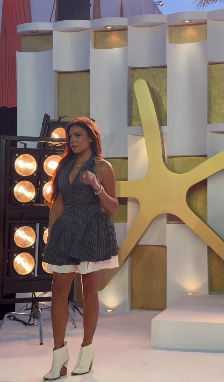 تألقت الفنانة ناهد السباعي، على السجادة الحمراء في اليوم الثاني لمهرجان الجونة السينمائي بإطلالة أنيقة ومميزة حيث ارتدت فستان قصير بدون أكمام باللون الرمادي والأبيض ويتميز بتصميمه المجسم الذي أبرز قوامها الممشوق كما تركت خصلات شعرها على كتفيها بإنسيابية.