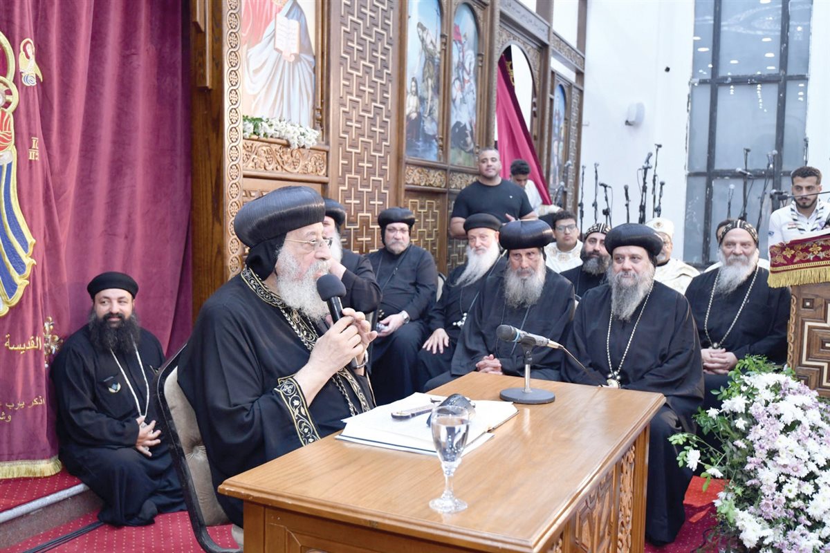 وفى العظة الأسبوعية التى ألقاها بكنيسة السيدة العذراء، والقديس القوى الأنبا موسى بمنطقة النهضة، التابعة لقطاع كنائس مدينة السلام، والحرفيين، وجه البابا التحية لمؤتمر السلام المنعقد بشرم الشيخ الأسبوع الماضى، عطفًا على تحية مصر، ورئيسها، ومسئوليها، الذى يعملون على معالجة حكيمة لأزمة حرب استمرت على مدار عامين.