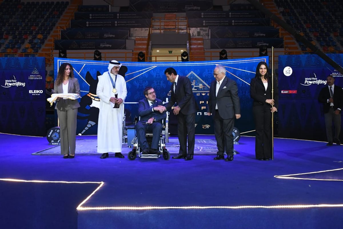 صبحي يشهد مراسم تسليم علم بطولة العالم لرفع الأثقال البارالمبي من مصر إلى البحرين..صور
