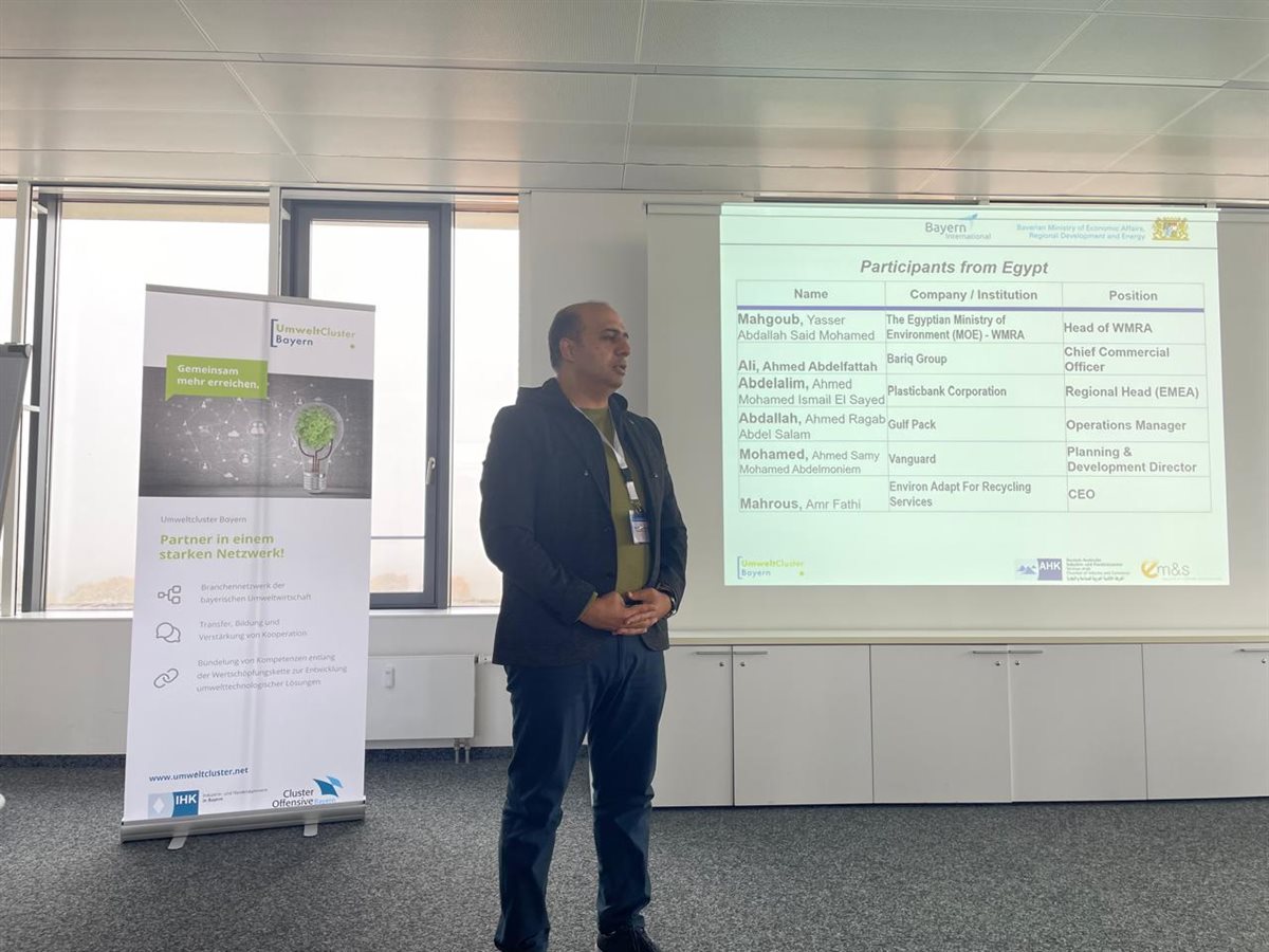 شارك ياسر عبدالله، الرئيس التنفيذي لجهاز تنظيم إدارة المخلفات، فى برنامج تقنيات إعادة التدوير وإدارة المخلفات، الذى عقد بولاية بفاريا الألمانية، بدعوة من الوكالة الألمانية للتعاون الدولى GIZ، وبمشاركة ممثلى عدد من الشركات العاملة فى مجال المخلفات بمصر “العربية للأسمنت - تيتان للأسمنت - زيرو كربون - بريق - بلاستيك بنك -ارتقاء - انفيرون آدابت”، وذلك بهدف التعرف على الشركات الألمانية التى تعمل فى مجال تدوير المخلفات وتوليد الطاقة والتكنولوجيات الحديثة في تحسين جودة Rdf والاستفادة من الخبرات ونقل التكنولوجيا فى هذا المجال.