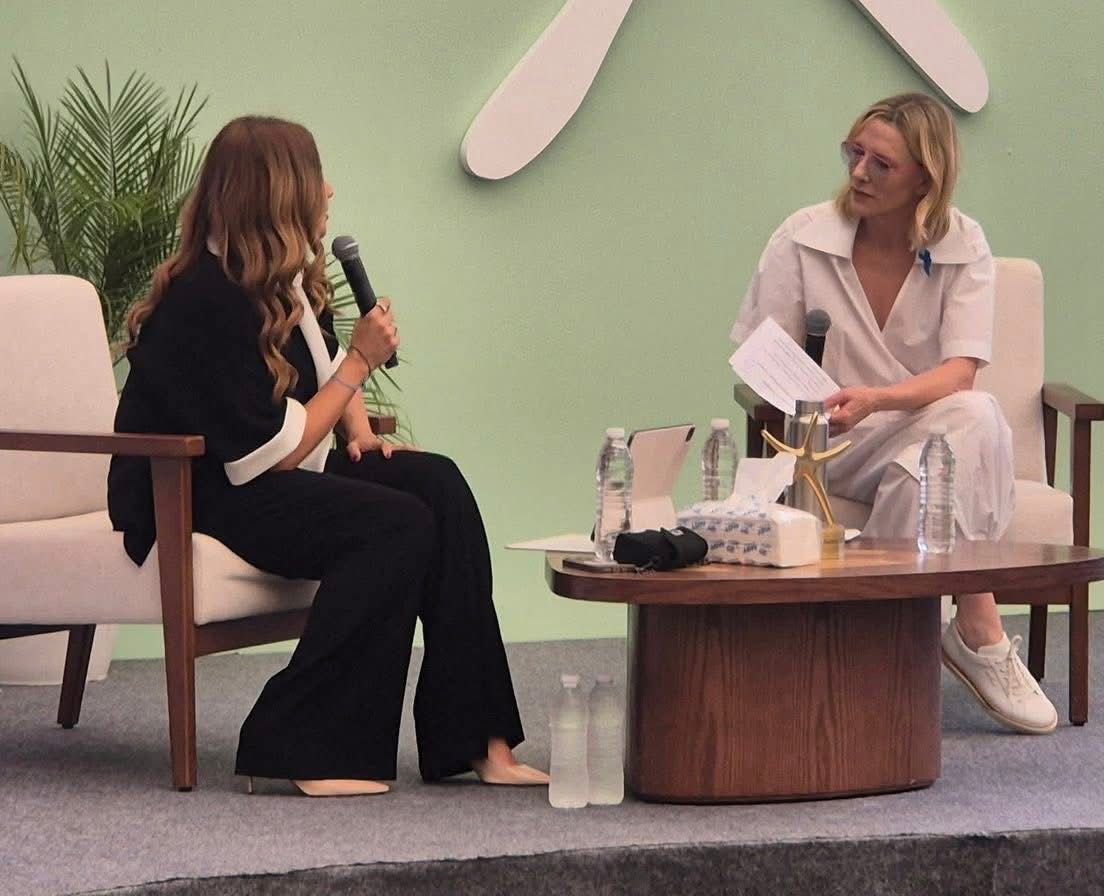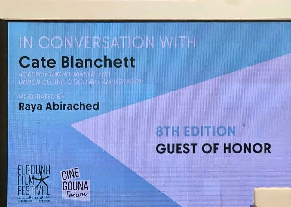 ضمن فعاليات الدورة الثامنة من مهرجان الجونة السينمائي، نظم المهرجان اليوم الأحد 19 أكتوبر جلسة حوارية مع النجمة العالمية كيت بلانشيت، أدارتها الإعلامية ريا أبي راشد.