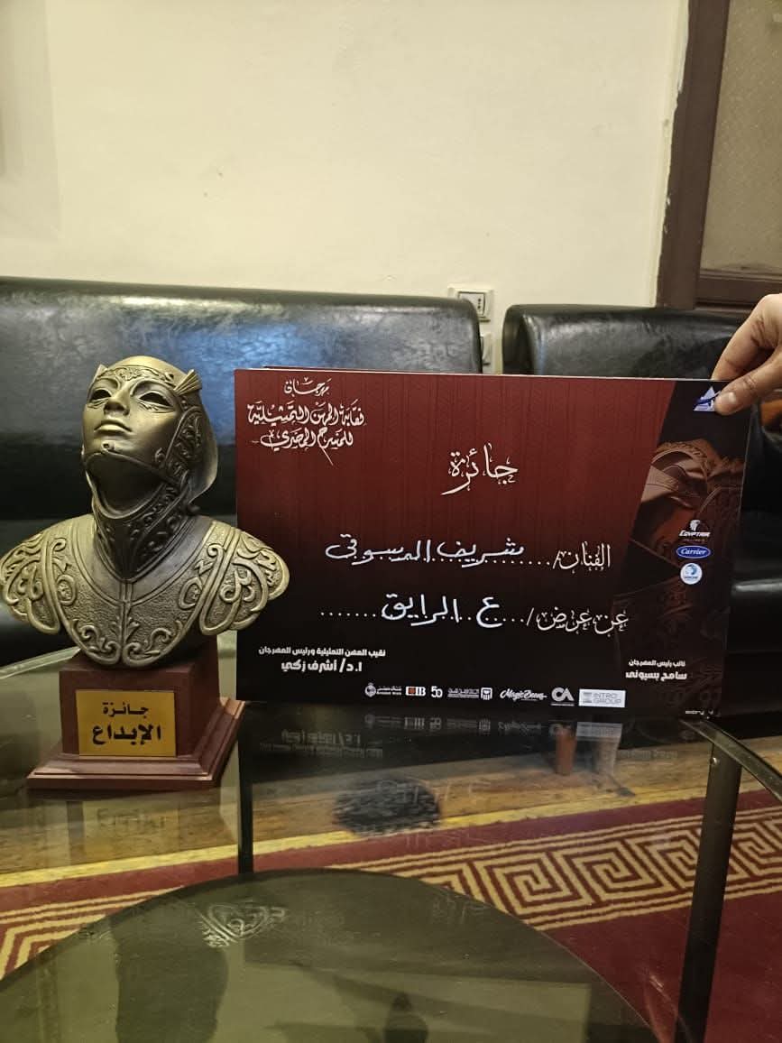 أعلن الفنان شريف الدسوقي عبر حسابه الرسمي على موقع "فيسبوك" عن فوزه بـ جائزة الإبداع في حفل ختام مهرجان نقابة المهن التمثيلية، معربًا عن امتنانه وسعادته بهذا التكريم.