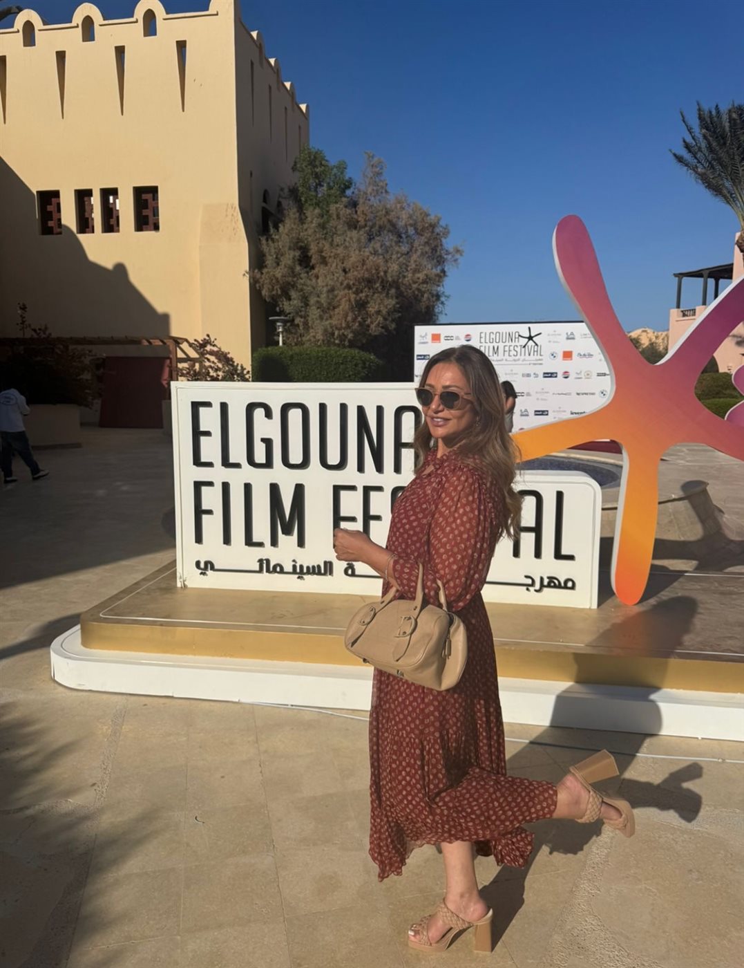 وتألقت ليلى علوي بفستان يشبه فستان السندريلا سعاد حسني الشهير، باللون الطوبي ومطبوع عليه دوائر بيضاء، صُمم من الشيفون، مما عكس أناقتها وجمالها الساحر.