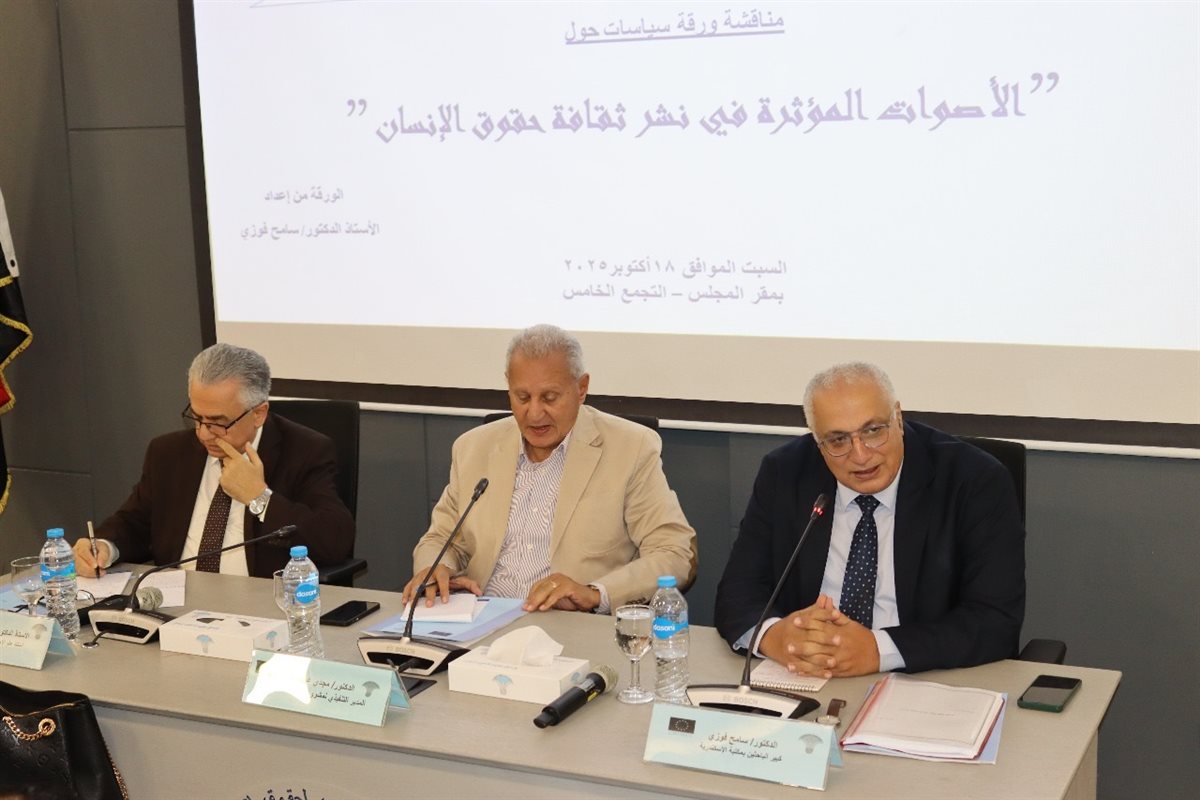 واستعرض فوزي محاور ورقة السياسات ، مؤكدًا أن نشر ثقافة حقوق الإنسان لا يتحقق بالشعارات بل ببناء وعي اجتماعي ومؤسسي مستمر، وأن بعض الممارسات والموروثات الثقافية قد تُضعف من فاعلية التشريعات، مما يتطلب مواجهة فكرية موازية للإصلاح القانوني. وشدد على أن الإعلام والخطاب الديني والمثقفين يشكلون أهم الأصوات المؤثرة في الوعي الحقوقي، داعيًا إلى تطوير خطاب إعلامي مسؤول يوحّد المفاهيم ويعزز قيم الكرامة والمواطنة.