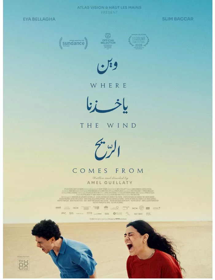 قبل أيام من عرضه العربي الأول في الدورة الثامنة من مهرجان الجونة السينمائي، كشفت شركة MAD Solutions عن البوستر الرسمي للفيلم التونسي وين ياخذنا الريح للمخرجة آمال قلاتي، الذي يشارك في مسابقة الأفلام الروائية الطويلة ضمن فعاليات المهرجان.