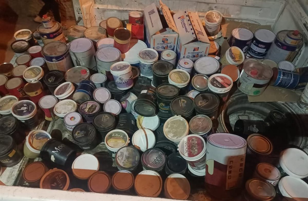 ضبط 300 عبوة بويات ودهانات غير صالحة للاستخدام بالفيوم