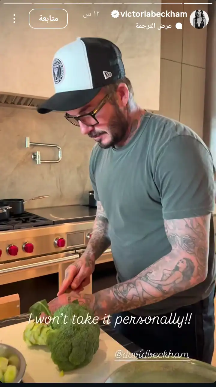 وفي الفيديو، ظهر ديفيد منهمكًا في الطهو داخل المطبخ، حينما سألته فيكتوريا ممازحة: "هل تريد أي مساعدة في المطبخ؟"، ليرد ضاحكًا: "من مَن؟ بالتأكيد لا، ابتعدي!"، لتجيبه هي بخفة ظل: "كيف يعني ابتعدي؟ أنا جاهزة لأساعد!"، ما جعل الموقف يتحول إلى لحظة كوميدية مليئة بروح الدعابة بين الزوجين.
