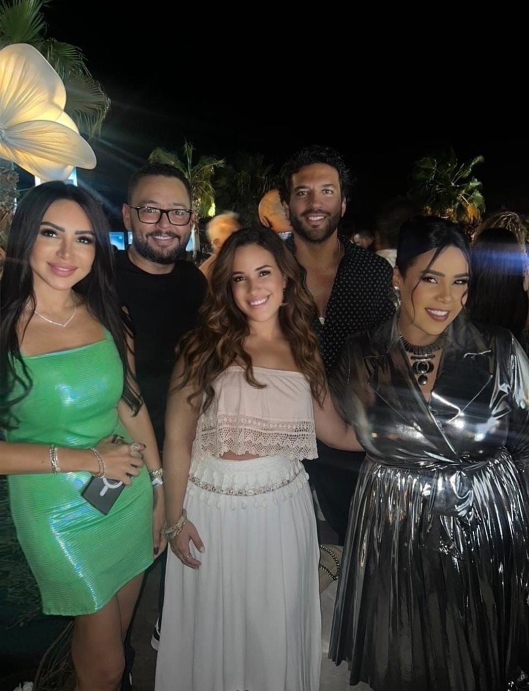 وظهرت شيماء سيف بفستان من الميتاليك الفضي، بأكمام طويلة وبقصة الـ V ناحية الصدر، وقصة البليسيه، مع حزام يحدد الخصر ويبرز أنوثتها، وتزينت بإكسسوارات باللون الفضي، ضم عقد كبير الحجم وخاتم، مع أقراط شكل الورد؛ ليعطي لمسة جذابة وأنيقة للوك.