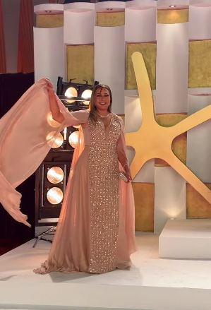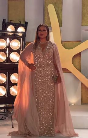 وبدت ليلى علوي بإطلالة ملكية، مرتدية فستان طويل مجسم، بأكمام ملكية، صمم من قماش الترتر مع الحرير الناعم لتبدو مثل الملكة في أعين جمهورها.