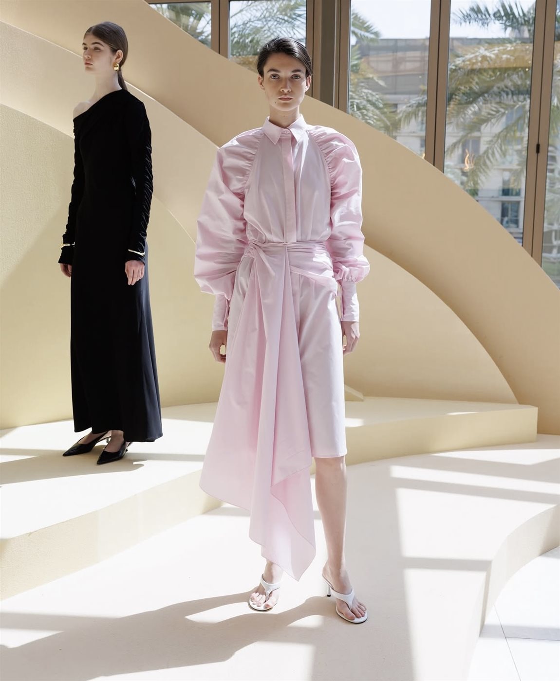 سيطر اللون الأسود على الأغلب، مانحًا العرض روح الغموض والأناقة العصرية، مع استخدام أقمشة فاخرة وقصّات مريحة، بينما أضافت التفاصيل غير التقليدية مثل أغطية الرأس والأوشحة لمسة درامية مميزة للعرض، عاكسة أسلوب العلامة الجريء والمبتكر.