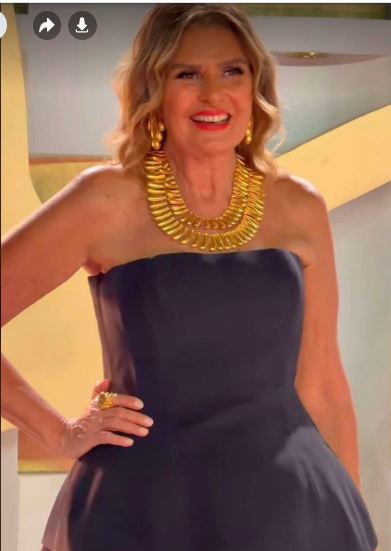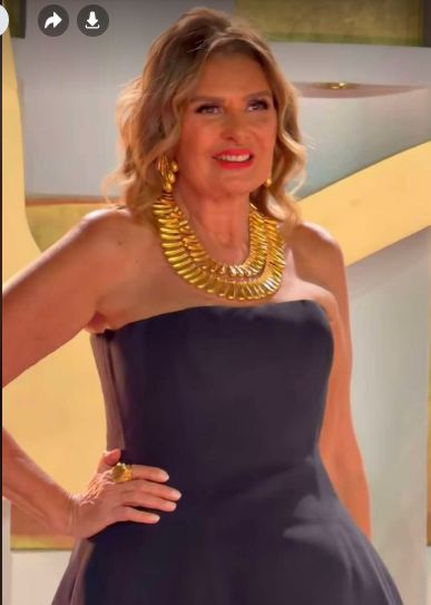وتزينت ببعض المجوهرات الذهبية لتبرز سحر أناقتها على طريقتها الخاصة فهي امرأة حالمة من أصحاب برج الحوت المائي.