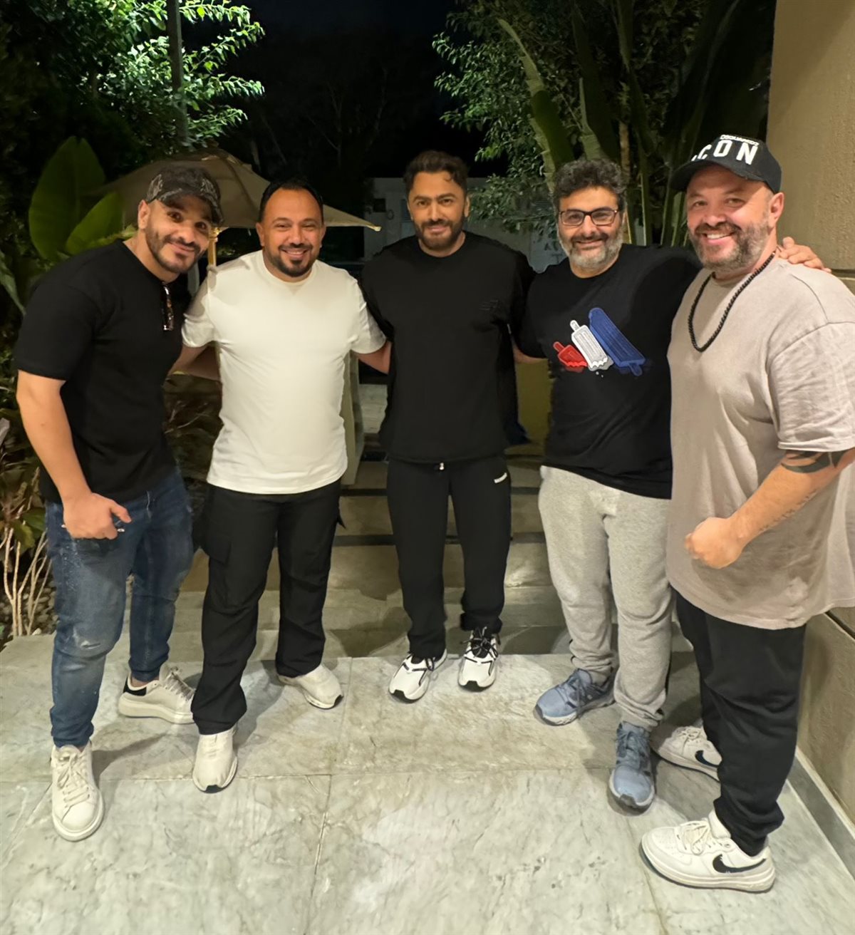 وتظهر الصورة المرفقة الفنان تامر حسني بصحبة منظم الحفل وليد منصور، خلال كواليس الاتفاق على الحفل في منزل النجم، حيث تم وضع اللمسات الأخيرة قبل بدء التحضيرات النهائية للحدث المنتظر داخل جامعة بدر بالقاهرة.