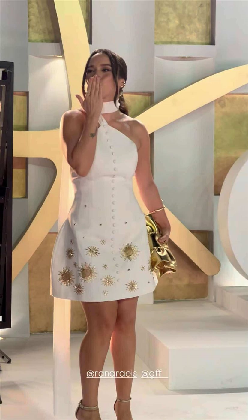 رنا رئيس تطل بالأبيض الذهبي في سادس أيام مهرجان الجونة
