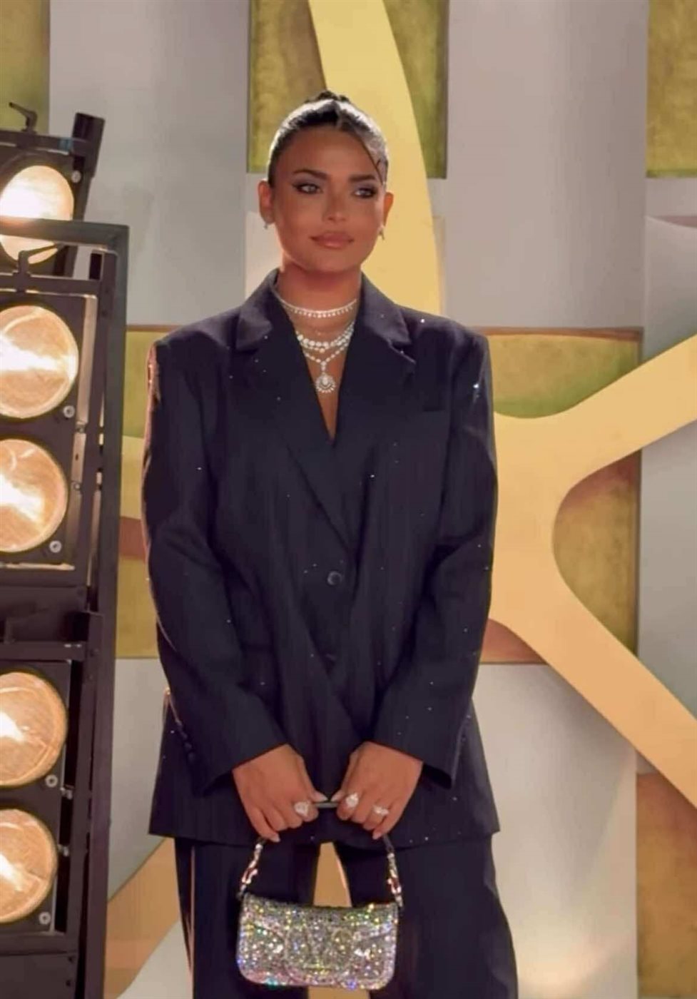 أسماء جلال تعتمد موضة البدل النسائية في سادس أيام مهرجان الجونة
