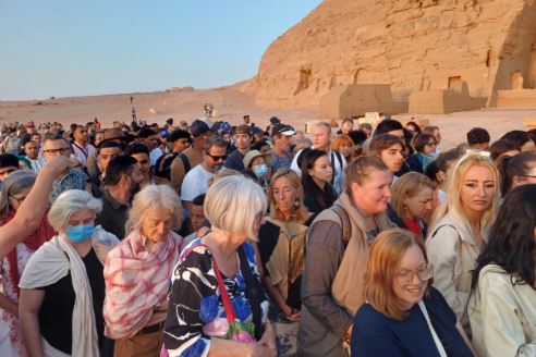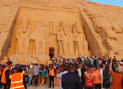آلاف السائحين يشهدون ظاهرة تعامد الشمس في معبد أبوسمبل