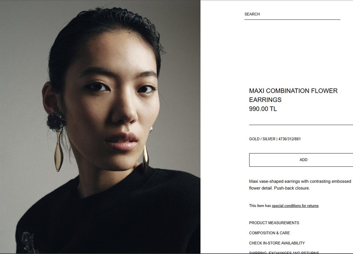 وبحسب الموقع الرسمي للماركة الإسبانية زارا، يتراوح سعر الحلق الذي ارتدته أمينة بين 1200 و1500 جنيه مصري، وهو من مجموعة "ماكسي" للأقراط الزهرية، ويُصمم على شكل مزهرية تخرج منها زهرة منقوشة، ويأتي باللونين الذهبي والفضي، ويتكون من 69% زنك، و30% حديد، و1% تيتانيوم.