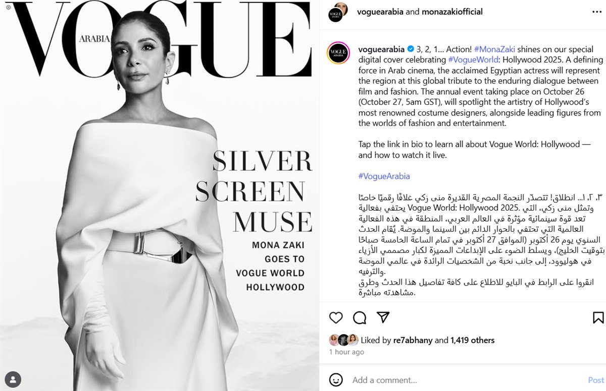 - منى زكي تمثل السينما العربية خلال فعالية فوغ العالمية 2025 بهوليوود