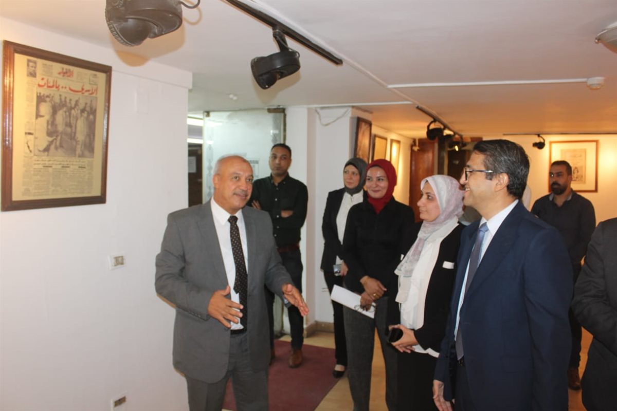 قبل انطلاق فعاليات الندوة، اصطحب الأستاذ الدكتور أسامة طلعت – رئيس الهيئة العامة لدار الكتب والوثائق القومية، والدكتورة رشدية ربيع – رئيس دار الوثائق القومية – الضيوف في جولة داخل معرض الدوريات التاريخية الذي أقامته دار الوثائق، ويضم مجموعة نادرة من مانشيتات الصحف القومية الصادرة خلال أيام حرب أكتوبر، استعرض المعرض كيف وثقت الصحافة القومية لحظة العبور المجيدة، من خلال العناوين الأولى التي أعلنت النصر، والصور الأصلية لبطولات المقاتلين على الجبهة، إلى جانب عدد من أعداد الصحف التي رصدت تفاعلات النصر في الداخل والخارج، لتجسد الذاكرة الصحفية الحية لتلك الأيام الخالدة في تاريخ الوطن.