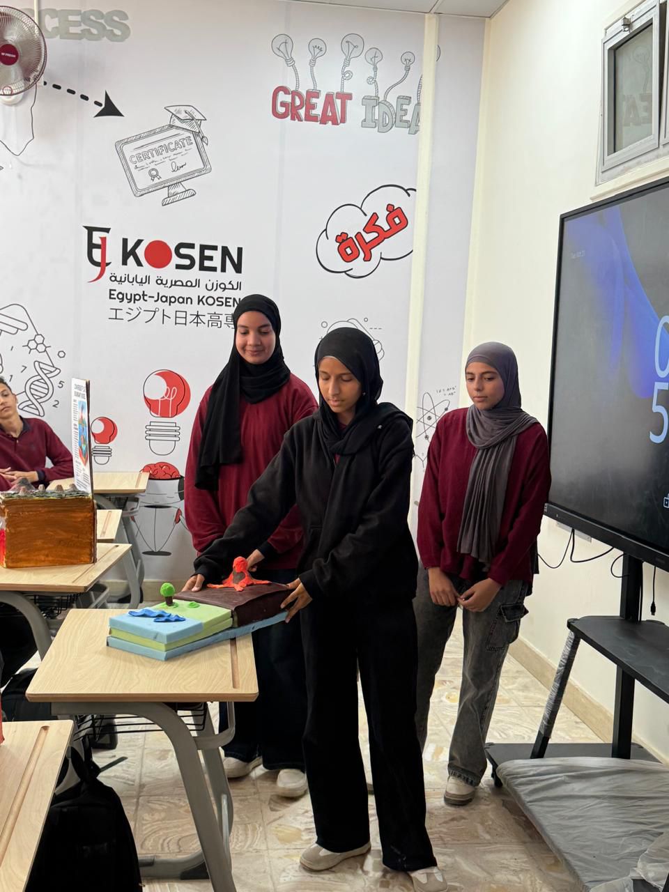 طلاب معهد الكوزن الياباني يبدعون في تنفيذ مجسمات جيولوجية