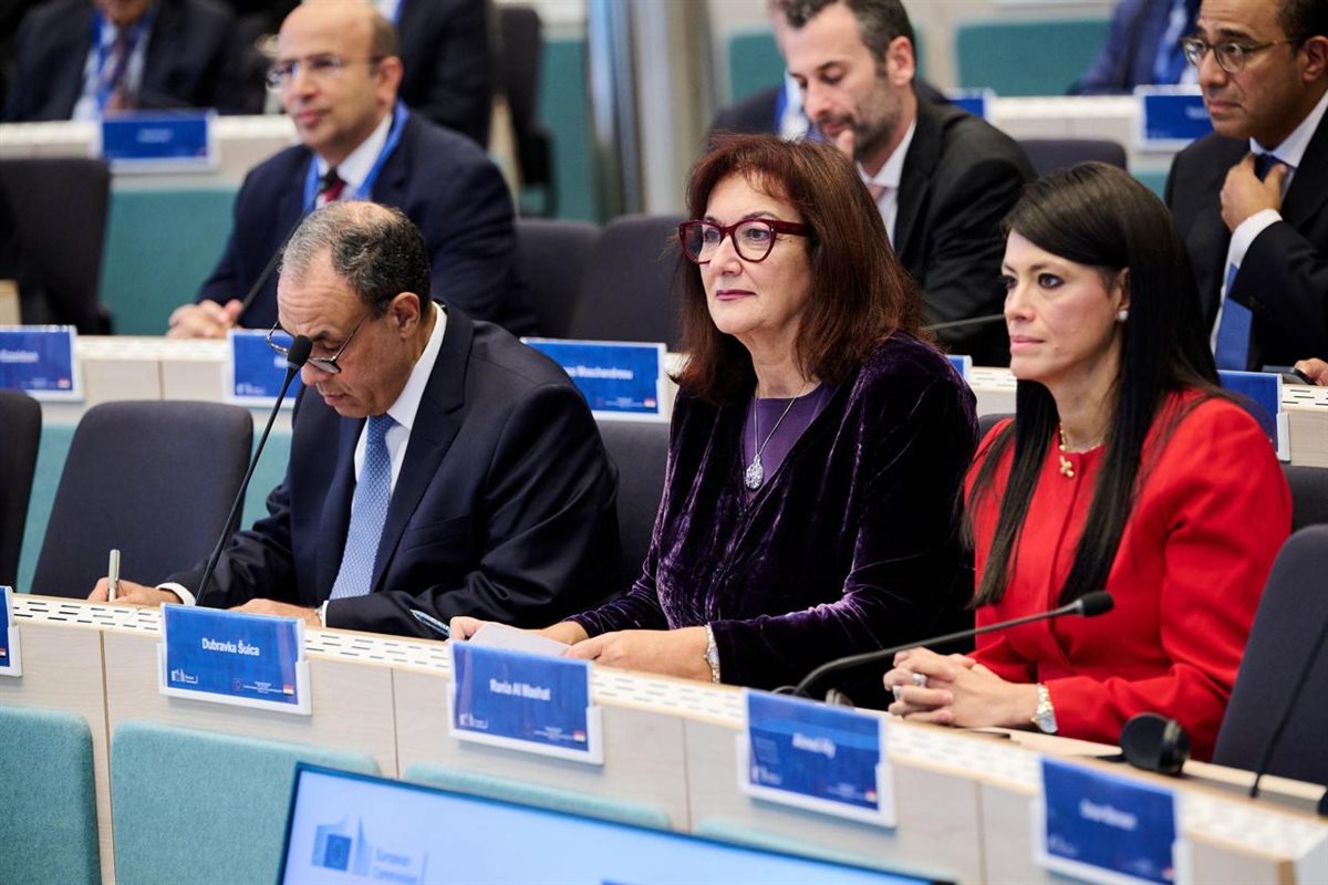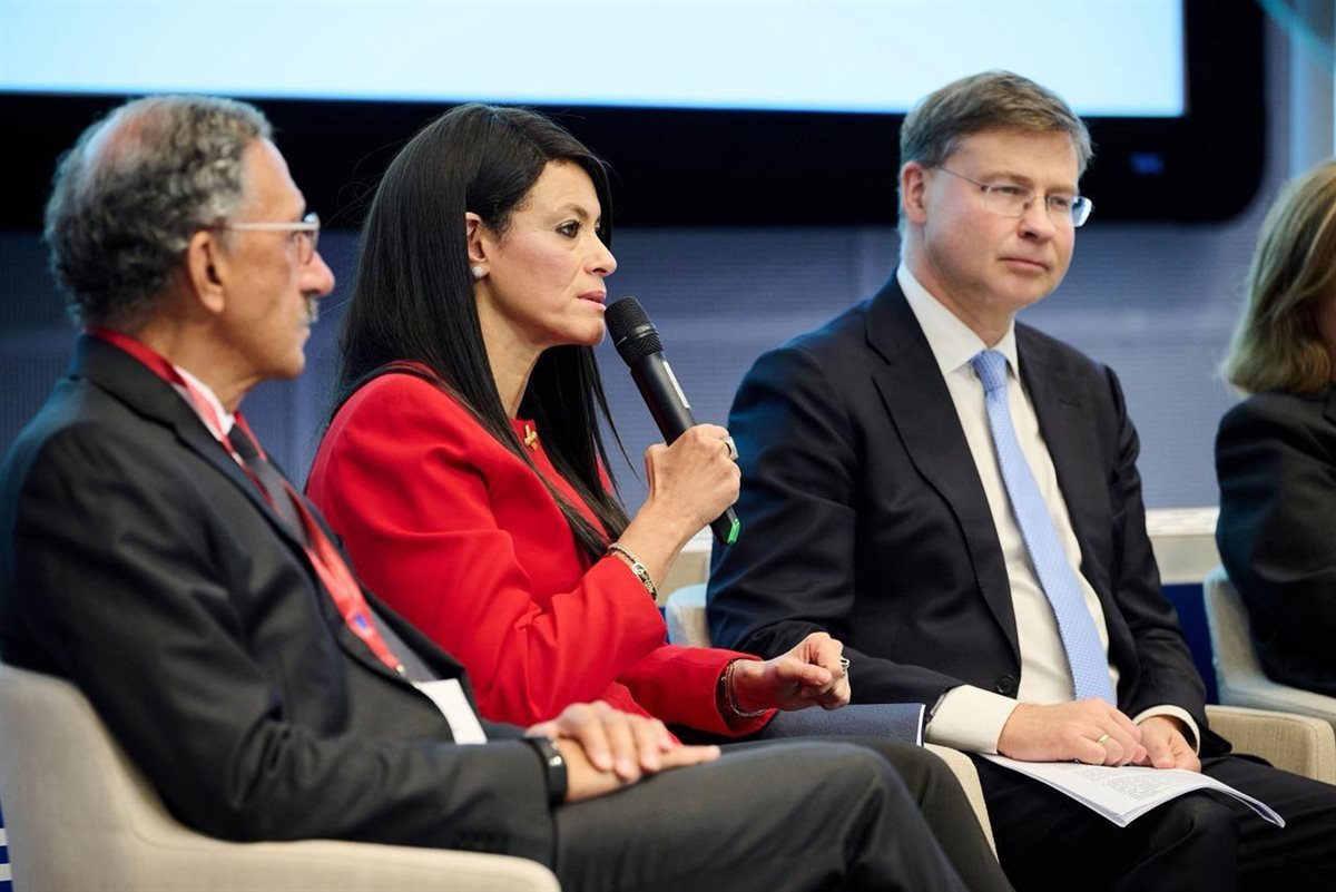 شارك في الجلسة فالديس دومبروفسكيس، المفوض الأوروبي للاقتصاد والإنتاجية، وجيلسومينا فيليوتي، نائب رئيس البنك الأوروبي للاستثمار (EIB)، وطارق توفيق، رئيس اتحاد منظمات الأعمال المتوسطية (Business MED)، ولابو بيستيلي، مدير الشؤون العامة بشركة إيني (ENI).