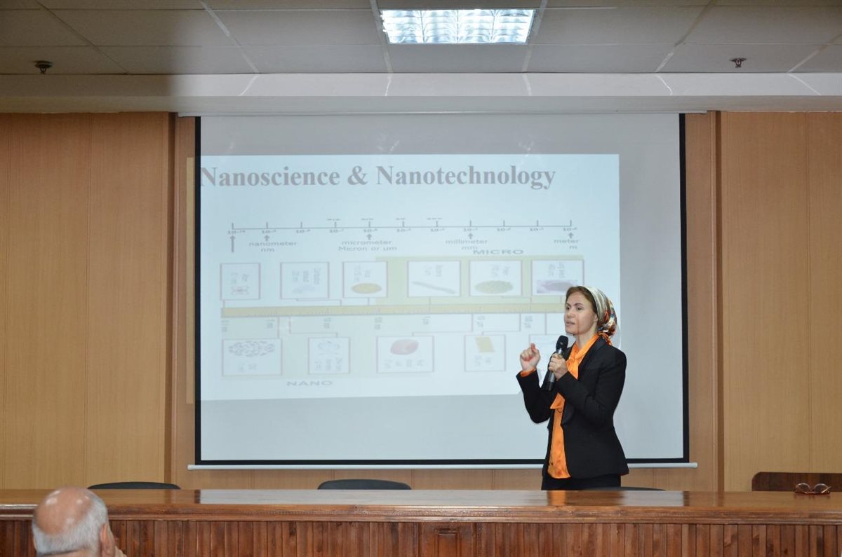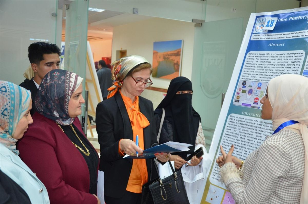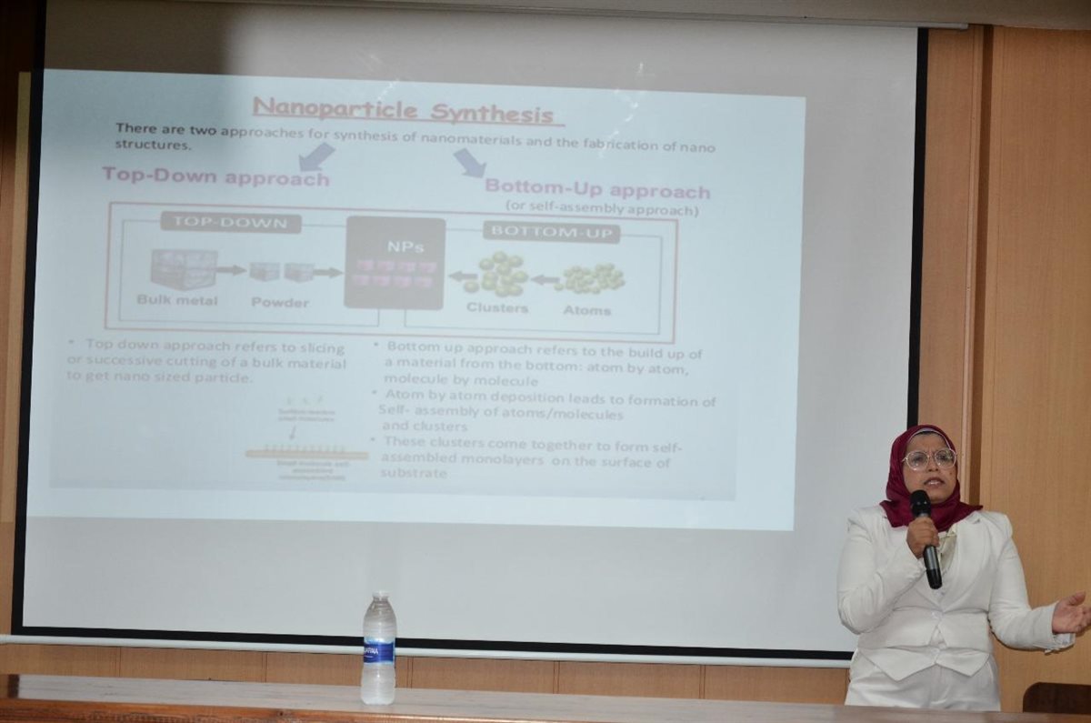 وعرضت الدكتور منى جمال عرفه أستاذ الصيدلانيات ومديرة مركز أبحاث النانو تكنولوجي بالجامعة البريطانية - مصر محاضرة بعنوان تحسين تحميل المواد الفعالة من خلال تصميم نماذج أولية (Prototypes) من النانو لتوصيل الدواء المستهدف وعرضت أمثلة لنماذج تستخدم في علاج الالتهابات والاورام وأمراض الجهاز العصبي باستخدام تقنيات النانو الحيوي.