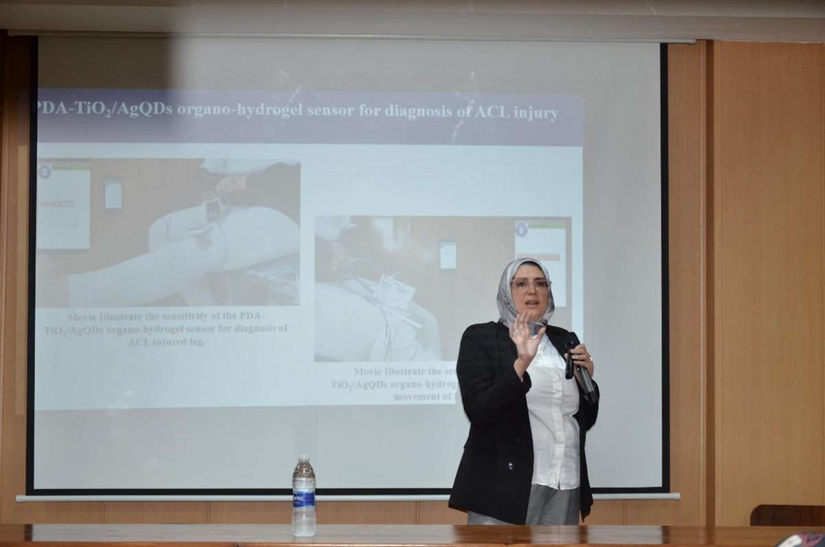 أما دكتور هند علي محمد مدرس الكيمياء وعلوم النانو بمعهد علوم وتكنولوجيا النانو- جامعة كفر الشيخ فقد تحدثت عن الإلكترونيات المرنة وعرضت نماذج أولية للتطبيقات الطبية.