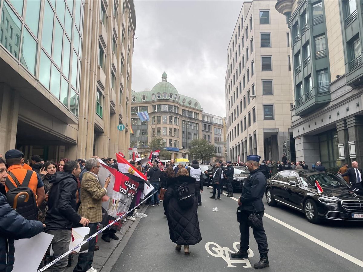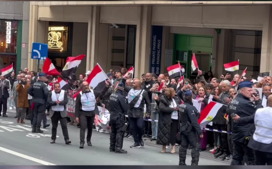 احتشد المئات من أبناء الجاليات المصرية من مختلف الدول الأوروبية أمام مقر إقامة الرئيس عبد الفتاح السيسي بالعاصمة البلجيكية بروكسل، وأمام مبنى البرلمان الأوروبي، في مشهد وطني مهيب يعكس عمق الانتماء والولاء للوطن.