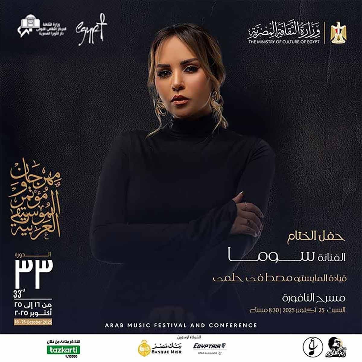 وقبل ذلك، تقدم المطربة سوما باقة مختارة من أغنيات زمن الفن الجميل إلى جانب عدد من أعمالها الخاصة، في أمسية فنية تجمع بين الأصالة والمعاصرة.