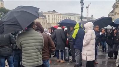 أثناء مشاركتها في وقفة استقبال الرئيس السيسي ببروكسل..