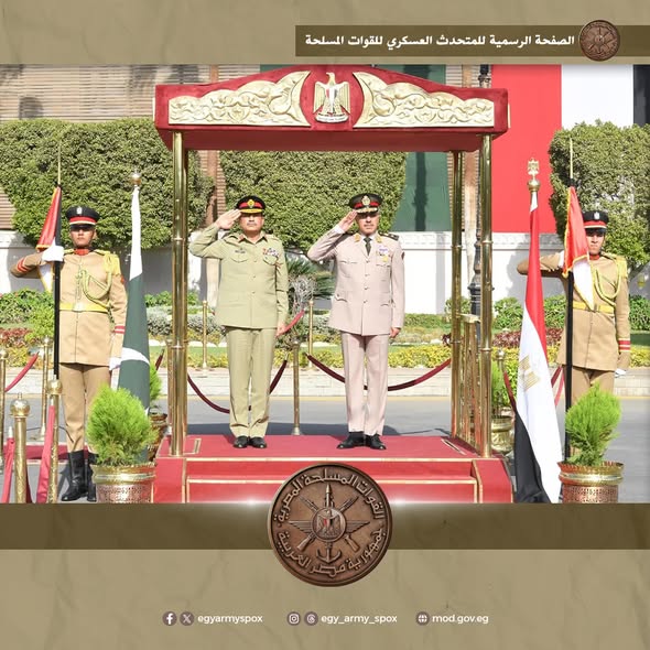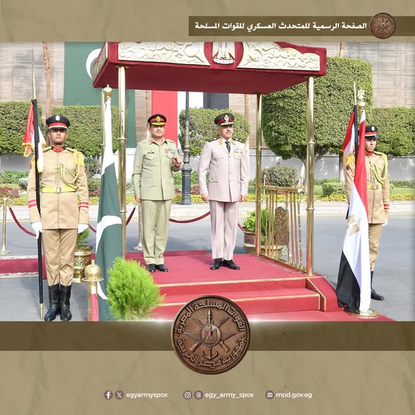 إلتقى الفريق أول / عبدالمجيد صقر القائد العام للقوات المسلحة وزير الدفاع والإنتاج الحربى المشير / عاصم منير رئيس أركان القوات البرية الباكستانية والوفد المرافق له الذى يزور مصر حالياً ، تناول اللقاء مناقشة عدد من الموضوعات ذات الإهتمام المشترك فى ضوء دعم العلاقات العسكرية بين القوات المسلحة المصرية والباكستانية ، كذلك توافق الرؤى حول العديد من الأُطر التى تدعم ركائز الأمن والسلم الدوليين .
