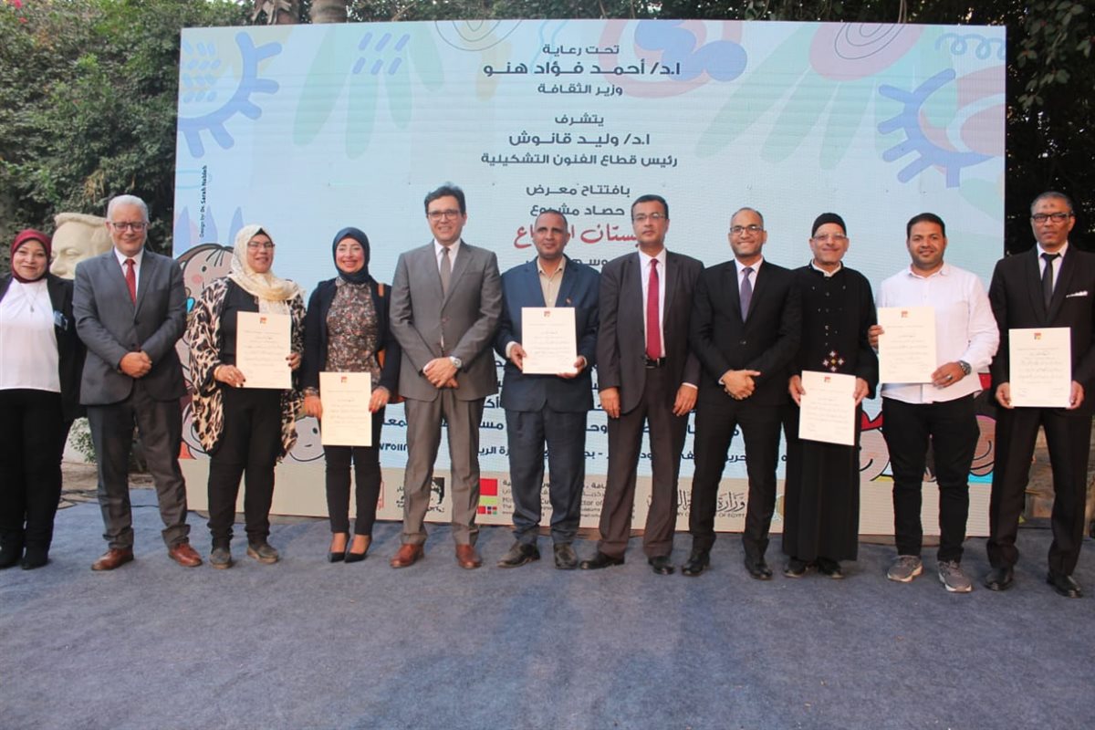 كما حرص وزير الثقافة على تكريم عدد من المشاركين في نجاح المشروع، الذين يمثلون عددًا متنوعًا من شركاء النجاح من الوزارات والجهات والمؤسسات الوطنية الداعمة للمشروع، كالأزهر الشريف، والكنيسة المصرية، ووزارة التنمية المحلية، والجمعيات الأهلية وغيرها، تقديرًا لإسهاماتهم الجادة والهادفة في الارتقاء بمنظومة العمل الثقافي وتأثيرها الإيجابي في بناء الإنسان.