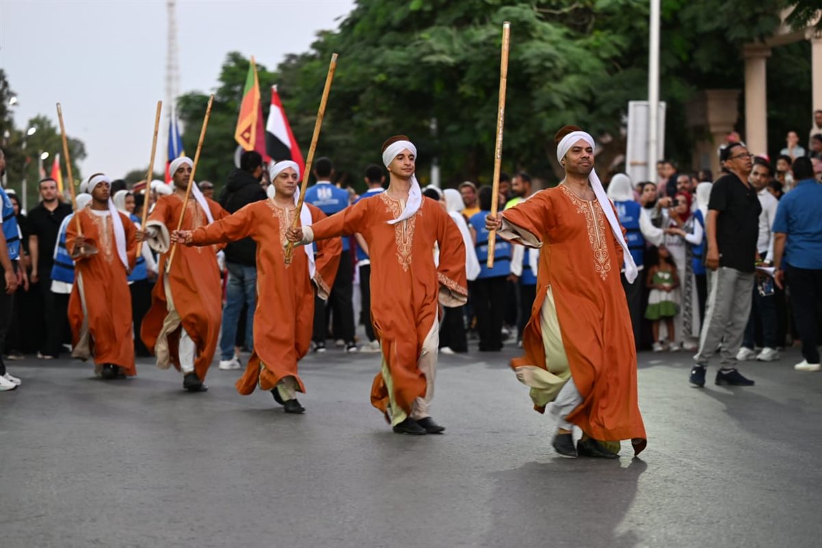 وشهدت المحافظة كرنفالا استعراضيا مبهجا عبر ديفيليه انطلق من شارع محمد علي حتى مبنى المحافظة القديم، حيث قدمت 25 فرقة مصرية وأجنبية عروضا فنية جسدت التنوع الثقافي والتواصل الإنساني بين الشعوب.