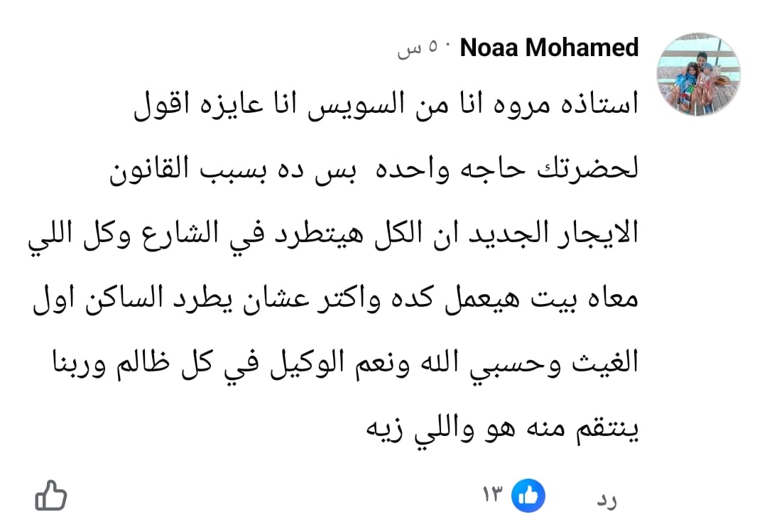 وأضافت أخرى: ده بسبب القانون الكل هيتطرد في الشارع وكل اللي معاه بيت هيعمل كده وأكتر عشان يطرد الساكن.