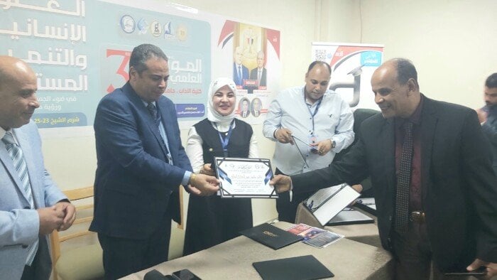 اختتمت كلية الآداب بجامعة كفر الشيخ المؤتمر العلمي الدولي الثالث، الذي نظمته تحت عنوان «العلوم الإنسانية ودورها في تحقيق التنمية المستدامة والهوية الثقافية في الجمهورية الجديدة»، بحضور نخبة من الأساتذة والباحثين من مختلف الجامعات المصرية والعربية.