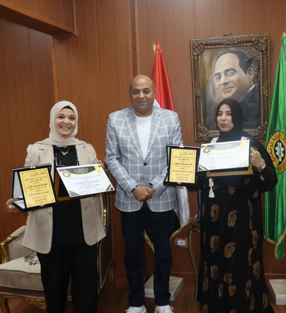 وكرم اليوم المهندس محمد الرشيدي وكيل وزارة التربية والتعليم بالدقهلية، الدكتورة علياء عزت محمد الضهيري الموجه المالي والإداري بإدارة شرق المنصورة التعليمية، لحصولها علي درجة الدكتوراه في تكنولوجيا التعليم، والدكتورة عبير صديق محمد المقرش الموجه المالي و الإداري بالمديرية، لحصولها علي درجة الدكتوراه في إدارة الأعمال .