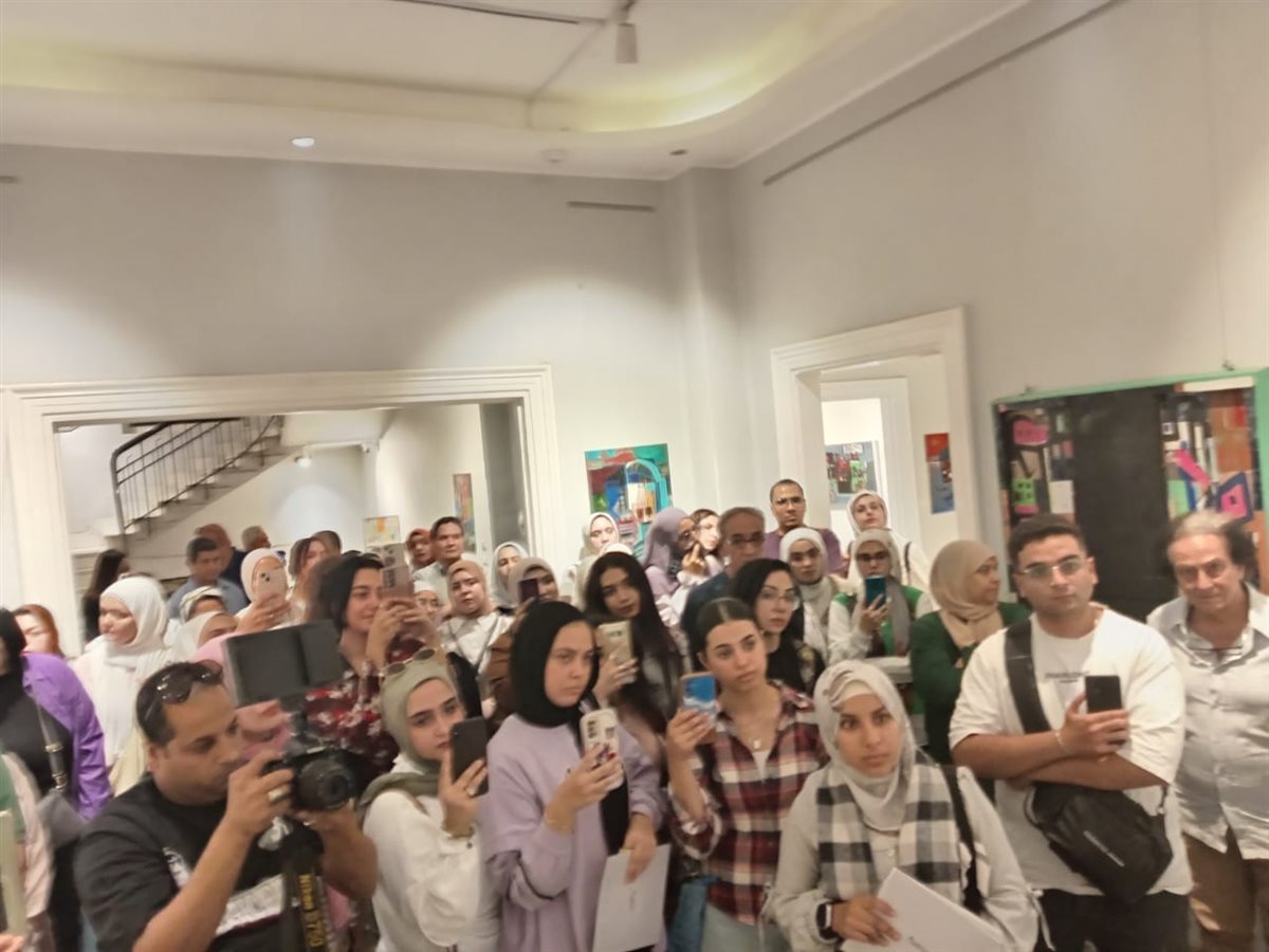 حضر الافتتاح السفير حازم رمضان قنصل مصر العام السابق في جدة، و حرمه الفنانة الدكتورة نيفين درويش، والفنانة ابتسام زكي عبد الرحمن حرم السفير أسامة العشيري مساعد وزير الخارجية السابق، والفنان طارق الكومي نقيب التشكيليين، ورئيس اتحاد التشكيليين الفلسطينيين الدكتور عصام حلس، والفنانون الكبار سامي البلشي وصلاح حماد وأحمد الجنايني وصفية القباني ووليد عبيد وحكيم جماعين ومراد درويش وشمس القرنفلي والسيد عبده سليم وأسماء الدسوقي، والدكتور محمد هشام قنديل رئيس مجلس إدارة أتيليه العرب للثقافة والفنون، والمهندس أسامة قنديل مدير جاليري ضي.
