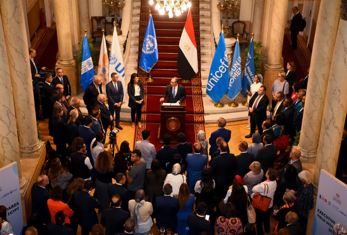 استقبل د. بدر عبد العاطي وزير الخارجية والهجرة وشئون المصريين بالخارج والدكتورة رانيا المشاط وزيرة التخطيط والتنمية الاقتصادية والتعاون الدولي، وبحضور السيد حسن الخطيب وزير الاستثمار والتجارة الخارجية، رؤساء المجالس التنفيذية لبرنامج الأمم المتحدة الإنمائي UNDP، وصندوق الأمم المتحدة للسكان UNFPA، ومكتب الأمم المتحدة لخدمات المشاريع UNOPS، واليونيسيف UNICEF، وهيئة الأمم المتحدة للمرأة UN WOMEN، وبرنامج الأغذية العالمي WFP يوم الاحد ٢٦ اكتوبر.