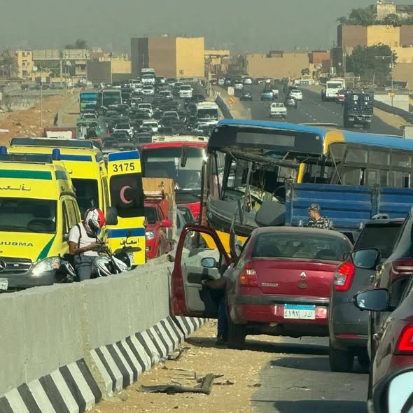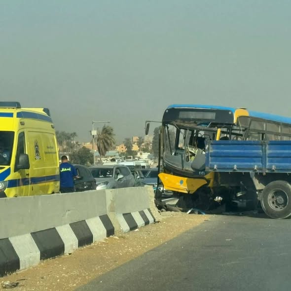 تلقى قسم الشرطة في الجيزة بلاغًا عن تصادم أتوبيس نقل عام مع الحاجز الخرساني على الطريق السياحي في اتجاه المنيب، ما أدى إلى إصابة السائق، وعلى الفور، تم إرسال سيارات الإسعاف إلى المكان لنقل المصابين.