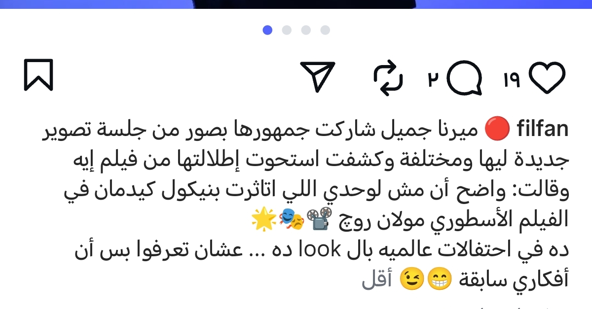 وعلقت ميرنا وليد على الصور التي شاركت بها متابعيها عبر حسابها الشخصي الإنستجرام ، قائلة: " واضح ان مش لوحدي اللي اتاثرت بنيكول كيدمان في الفيلم الاسطوري مولان روج ده في احتفالات عالمية باللوك ده عشان تعرفوا ان أفكاري سابقة".