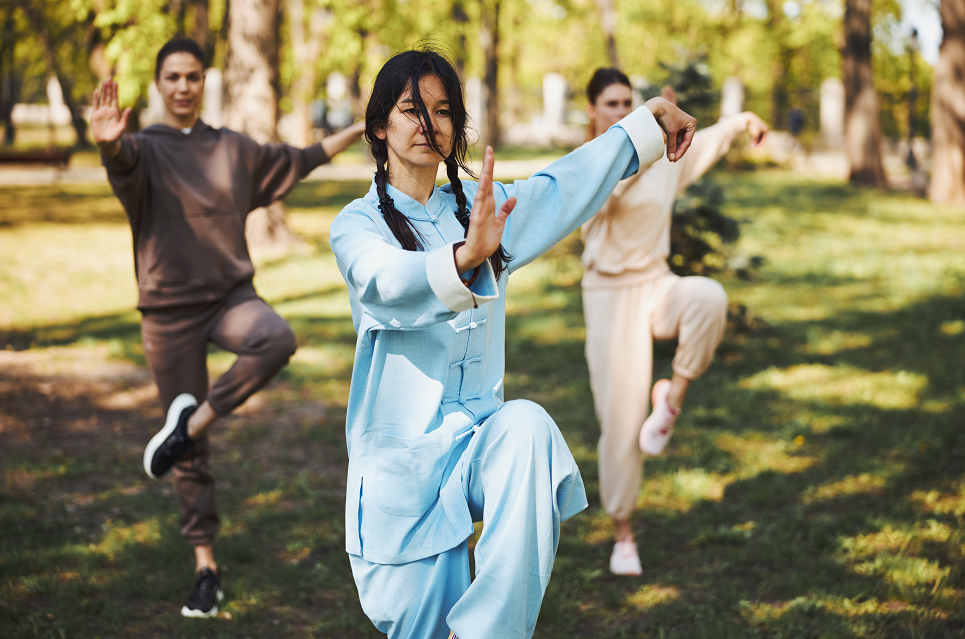 وتعد التمارين المعروفة باسم "تاي تشي" شكلا من أشكال التمارين البدنية الصينية التي تجمع بين الحركات البطيئة والمنسقة للجسم والتنفس العميق والتركيز الذهني، ويُمارس عادة لتعزيز التوازن والمرونة والقوة العضلية، إضافة إلى فوائده النفسية والجسدية.
