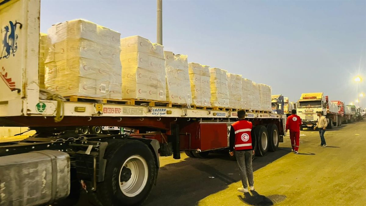 الهلال الأحمر المصري يدفع بـ 300 ألف سلة غذائية عبر قافلة "زاد العزة”