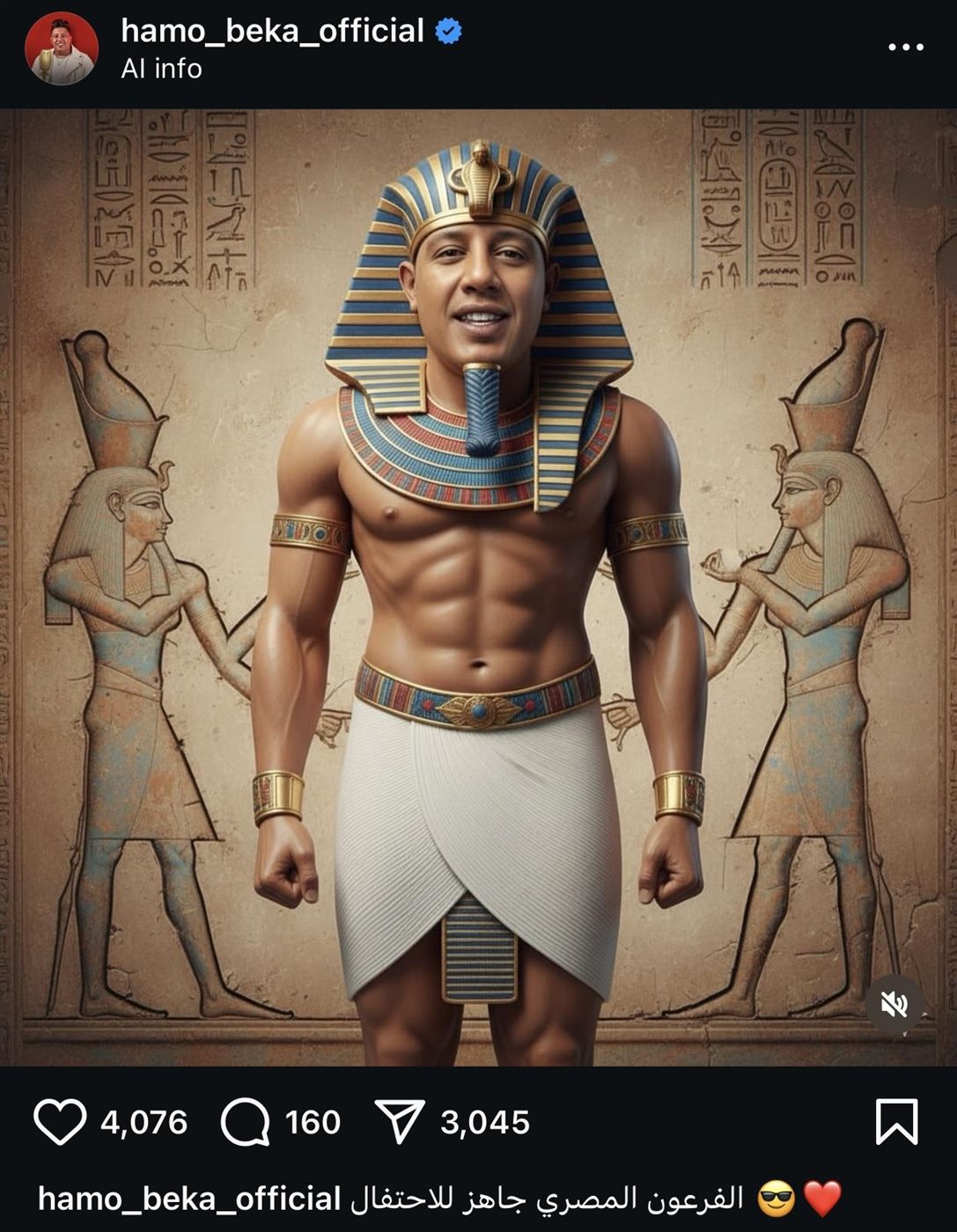 واختتم الفنان منشوره بتعليقٍ ساخر ومعبّر كتب فيه: "الفرعون المصري جاهز للاحتفال"، موضحًا أن الصورة تم تصميمها بواسطة الذكاء الاصطناعي، لتضفي على المناسبة لمسة من الطرافة والاعتزاز بالهوية المصرية.