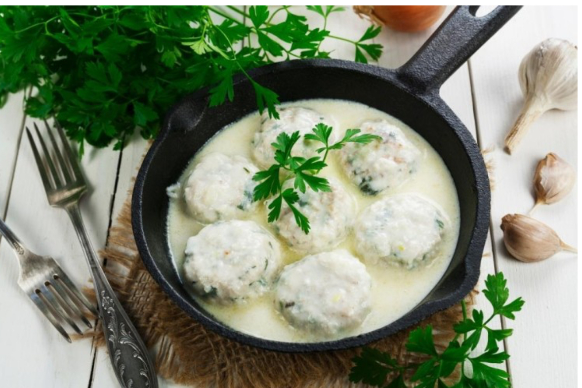 كرات كفتة الدجاج المشوية للرجيم مع صوص كريمي