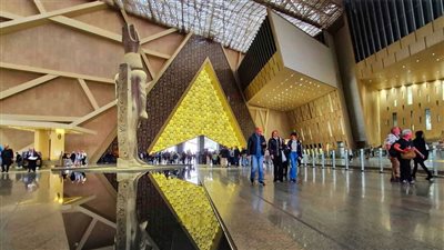 - يقف المتحف المصري الكبير جاهزًا ليستقبل زواره من كل أنحاء العالم، واجهة زجاجية ضخمة تطل على الأهرامات، وقاعات عرض مجهزة بأحدث تقنيات الإضاءة والحفظ والعرض المتحفي.