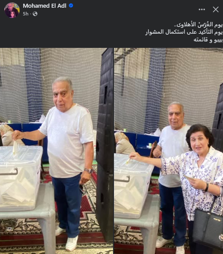 شارك المنتج محمد العدل رئيس قناة النادي الأهلي الأسبق، صورته وهو يدلي بصوته في انتخابات مجلس إدارة جديد في النادي الأهلي، للدورة المقبلة 2025-2029، اليوم الجمعة 31 أكتوبر، وذلك خلال منشور عبر حسابه الشخصي بموقع التواصل الإجتماعي الأشهر “فيس بوك”.