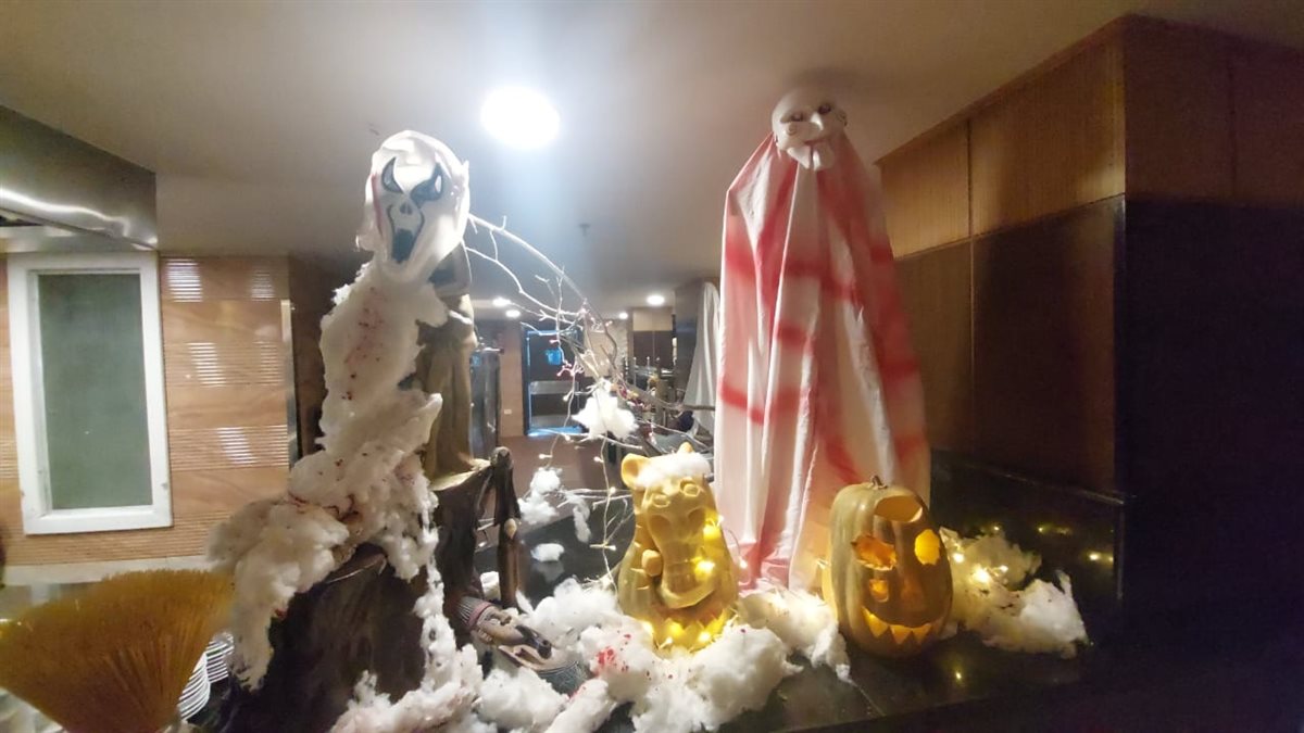 وقال ايمن غانم الخبير السياحي ومدير أحد الفنادق السياحية بالبحر الأحمر، إن طرقات الفنادق السياحية اكتست بديكورات مرعبة بداية من شكل المأكولات على البوفية في المطاعم التي جاءت على شكل “هياكل وجماجم عظمية”، وطغى لون الدم الأحمر على الملابس، مع وجوه تنكرية لأشباح ومصاصي دماء.