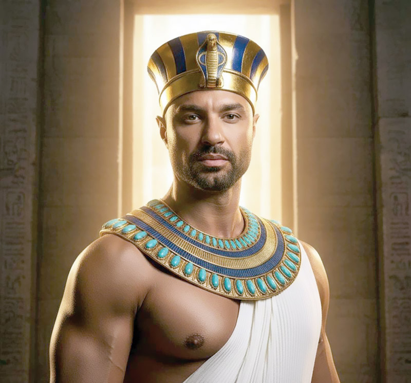 وأشار إلى أنه استخدم تقنيات الذكاء الاصطناعى المتقدمة لتوليد الصور بعد دراسة دقيقة لتفاصيل الملامح الفرعونية، من حيث الملابس، والإكسسوارات، وألوان الذهب والنقوش التى تميز الجداريات المصرية القديمة.