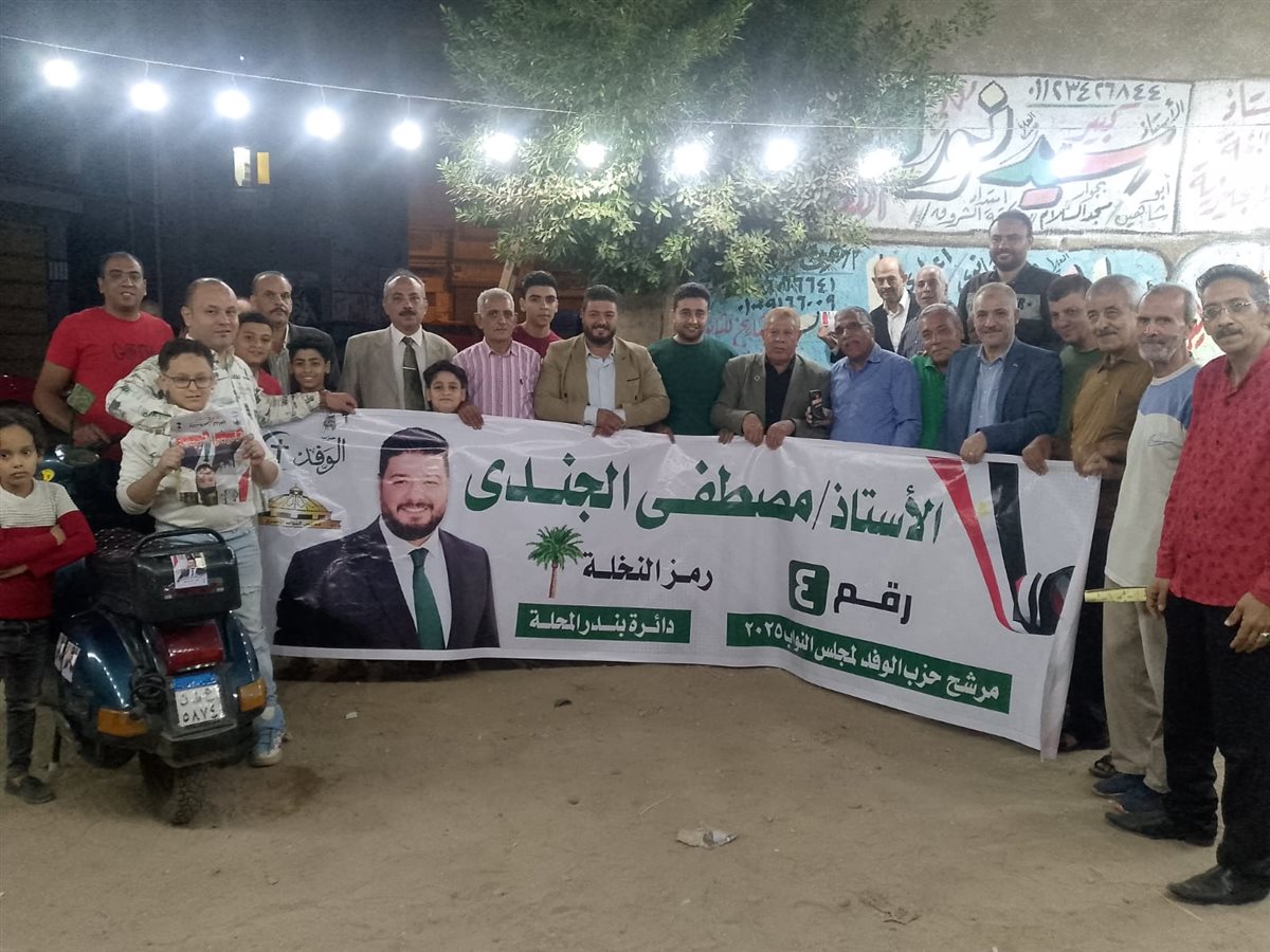 أشعل مرشح الوفد مصطفى الجندي أجواء الانتخابات في محافظة الغربية مساء الجمعة خلال مؤتمره الجماهيري الحاشد بمدينة المحلة الكبرى، حيث احتشد المئات من أبناء المدينة في منطقة أبو شاهين بجوار مسجد الوحدة ومعتق الرمل خلف موقف أبو شاهين، في مشهد عكس الالتفاف الشعبي حول رمز النخلة رقم 4.