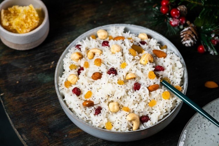 أرز بالمكسرات والزبيب من الأطباق الفاخرة التي تجمع بين المذاق الشهي والمكونات الغنية، ويتميز هذا الطبق بدمج الأرز البسمتي الطويل الحبة مع الزبدة، البصل الذهبي، والمكسرات المحمصة التي تضيف قرمشة ونكهة مميزة، مع لمسة من القرفة والزبيب، يمكن تقديمه كطبق جانبي فاخر مع اللحوم أو الدجاج، أو كوجبة رئيسية خفيفة، ليصبح خيارًا مثاليًا للمناسبات والعزائم العائلية