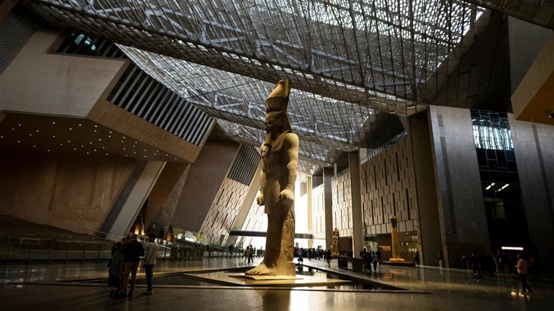 - يضم المتحف تمثال الملك رمسيس الثاني الذي استقر في موقعه المهيب داخل البهو العظيم.
